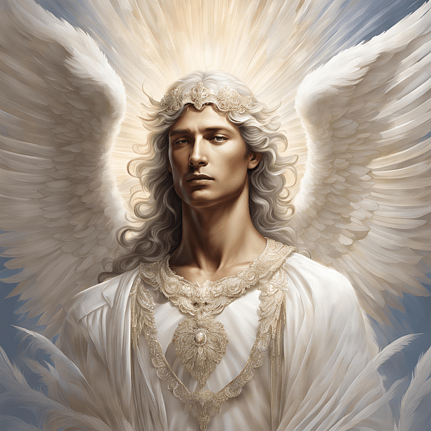 Azrael's presence shines with soft, pearl-like light, offering comfort and guidance or angel number 999 repeating.