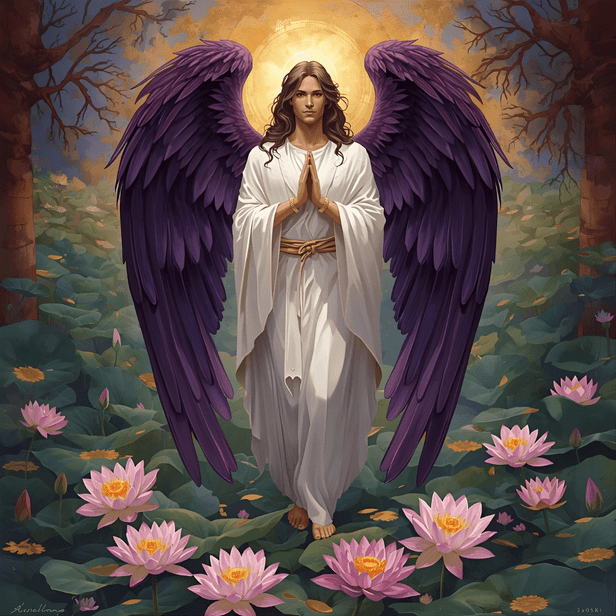 When nearby, Archangel Jeremiel reveals his vivid purple light through shimmering flashes.