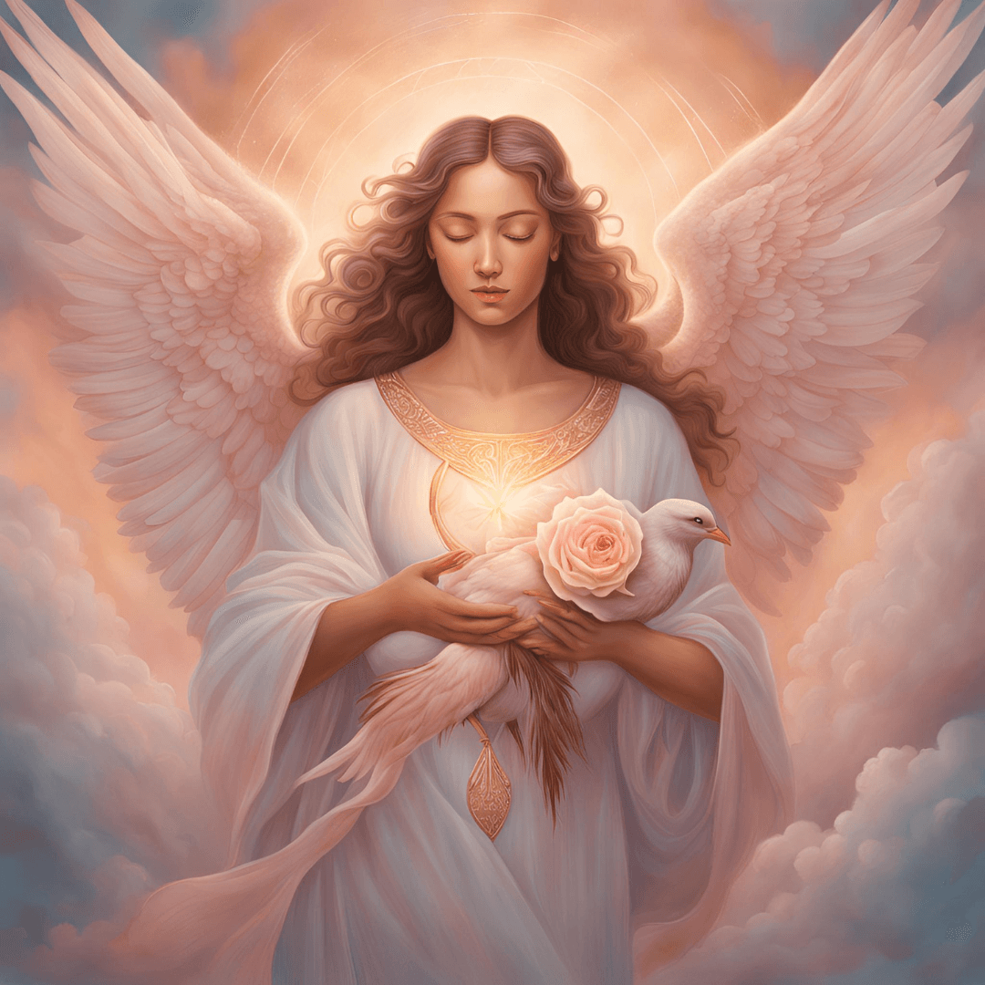 Archangel Muriel is a powerful yet gentle angel of peace who helps with emotions and intuition through unconditional love. Even though not as widely known, Muriel is a strong healer focused on feelings and harmony. As the protector of sensitivity and boundless love, Muriel assists in mastering the art of selfless affection. If emotions become overwhelming, Muriel's guidance can bring back balance and selfless compassion, helping those in need to regain inner peace and emotional stability.