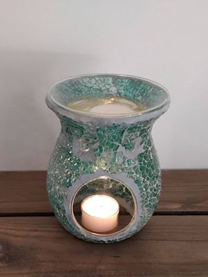 The mosaic design of the wax warmer is not just for looks, though it does catch the eye beautifully. It plays a role in how light travels through your room, bouncing delicately and creating a subtly shifting environment. When the tealight is lit, the combination of turquoise glass and gentle flame helps foster an inviting environment for meditation, relaxation, or reflection.